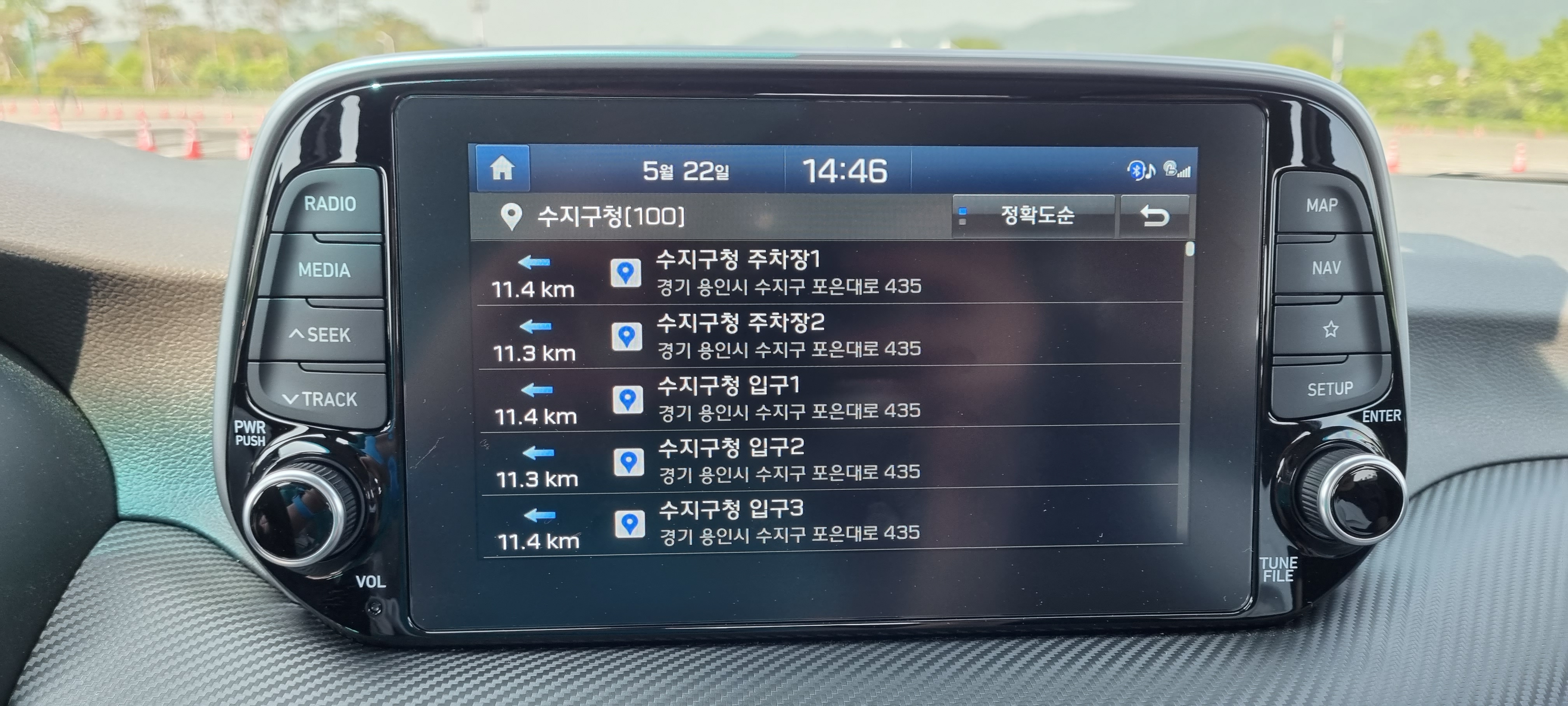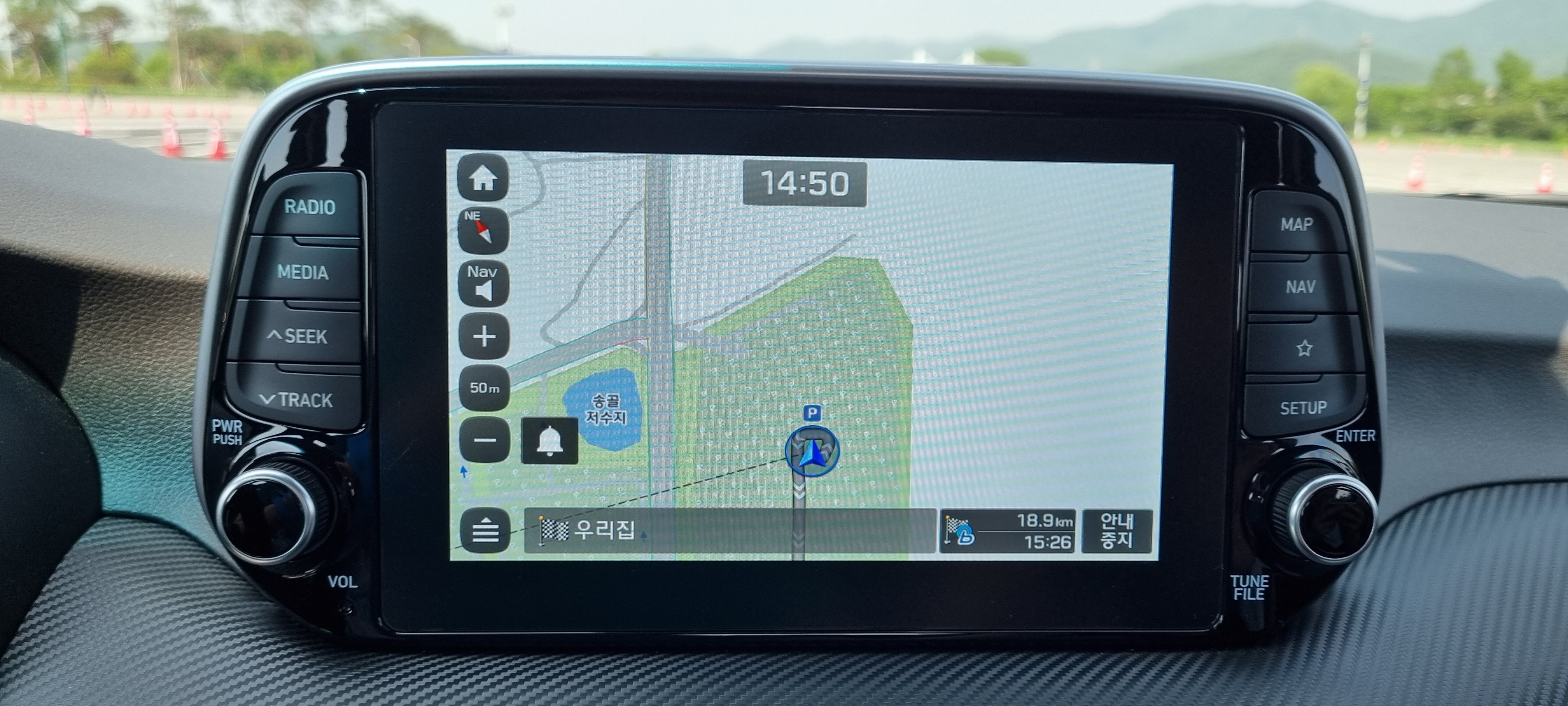 내비게이션의 양 옆에는 원터치 조작 버튼과 다이얼이 위치해있어 조작성은 좋았다. 다만, 버튼의 위치가 운전자에 가까운 왼쪽에 MAP, NAV, 즐겨 찾기, SETUP 버튼이 위치하는 것이 더 좋지 않았을까? 하는 생각이 들었다.