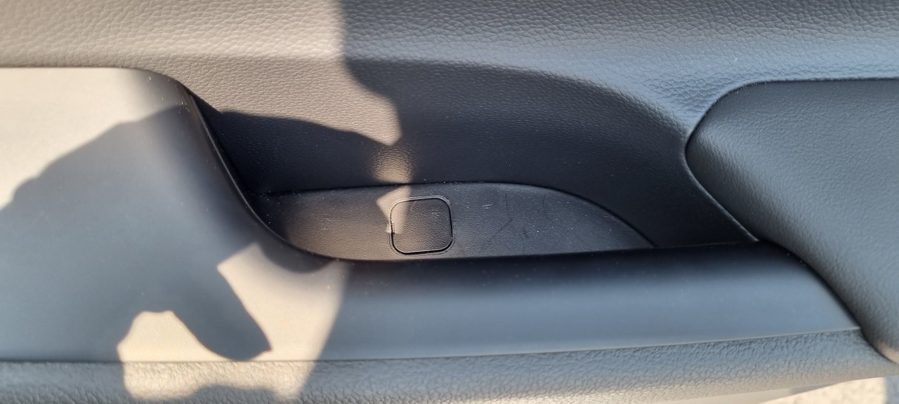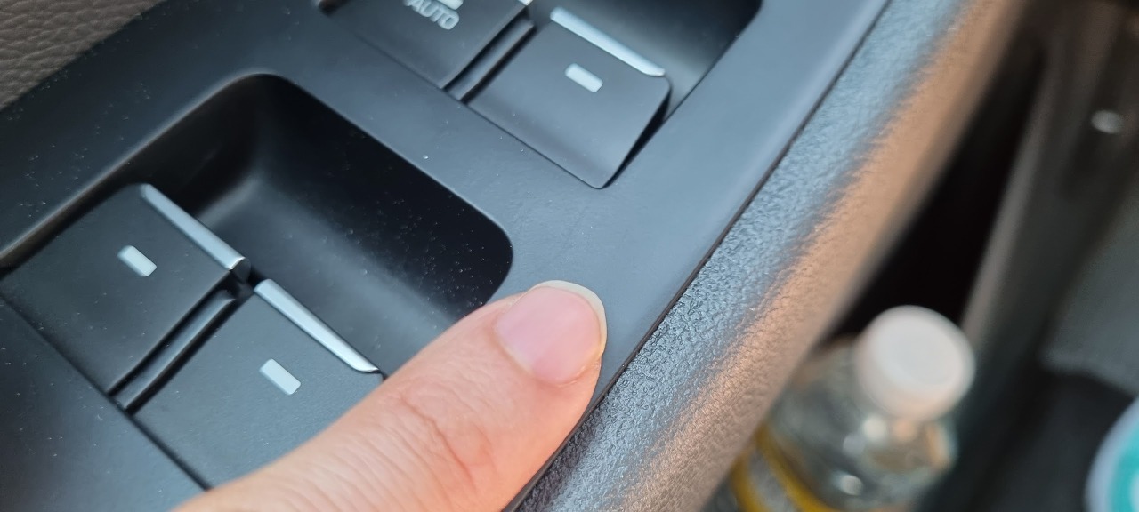 1열 도어의 윈도 조작 스위치 패널 부분. 위치나 조작성 모두 좋지만, 스크래치에 취약한 싸구려 플라스틱으로 되어 있다. 스위치 자체는 재질이 괜찮고 조작감도 나쁘지 않아 만족스럽지만, 스위치를 덮고 있는 커버와 도어 손잡이 하단에 나사 구멍을 막아 놓은 플라스틱이 대놓고 보이는 것은 아랫급 차량에서나 보던 마감이라 아쉽게 느껴졌다.