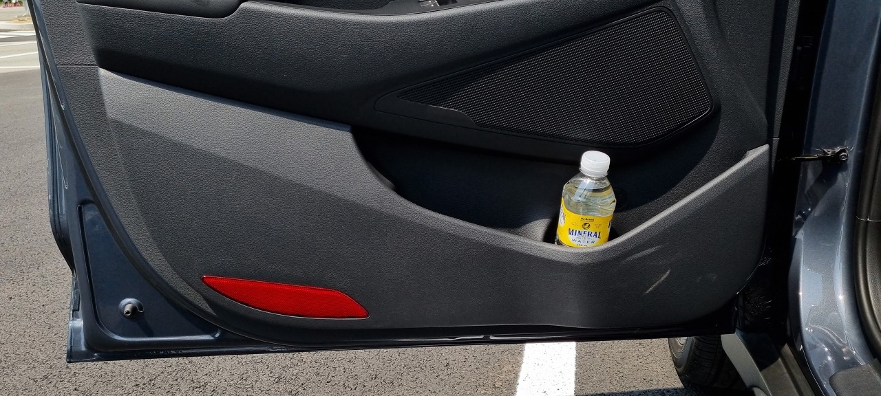1열 도어의 수납공간은 구역을 나눠 사용성이 좋게 구성되어 있다. 페트병을 넣을 수 있는 공간을 따로 만들어 준 것도 칭찬할 만하다.