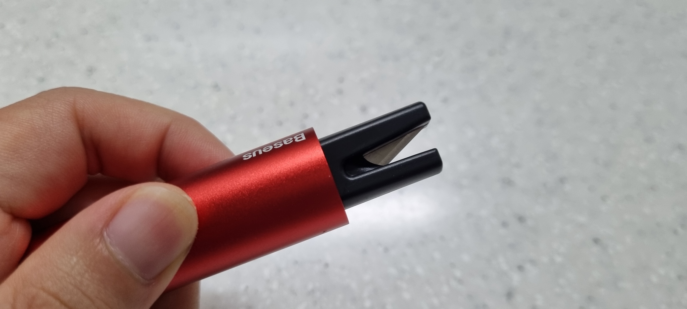 비상 탈출 망치니까 눈에 잘 띄도록 레드 색상으로 구입하였다. 디자인이 정말 전자 담배나 LED 랜턴 같다;; 이걸로 두꺼운 차량 유리를 깰 수 있을까??