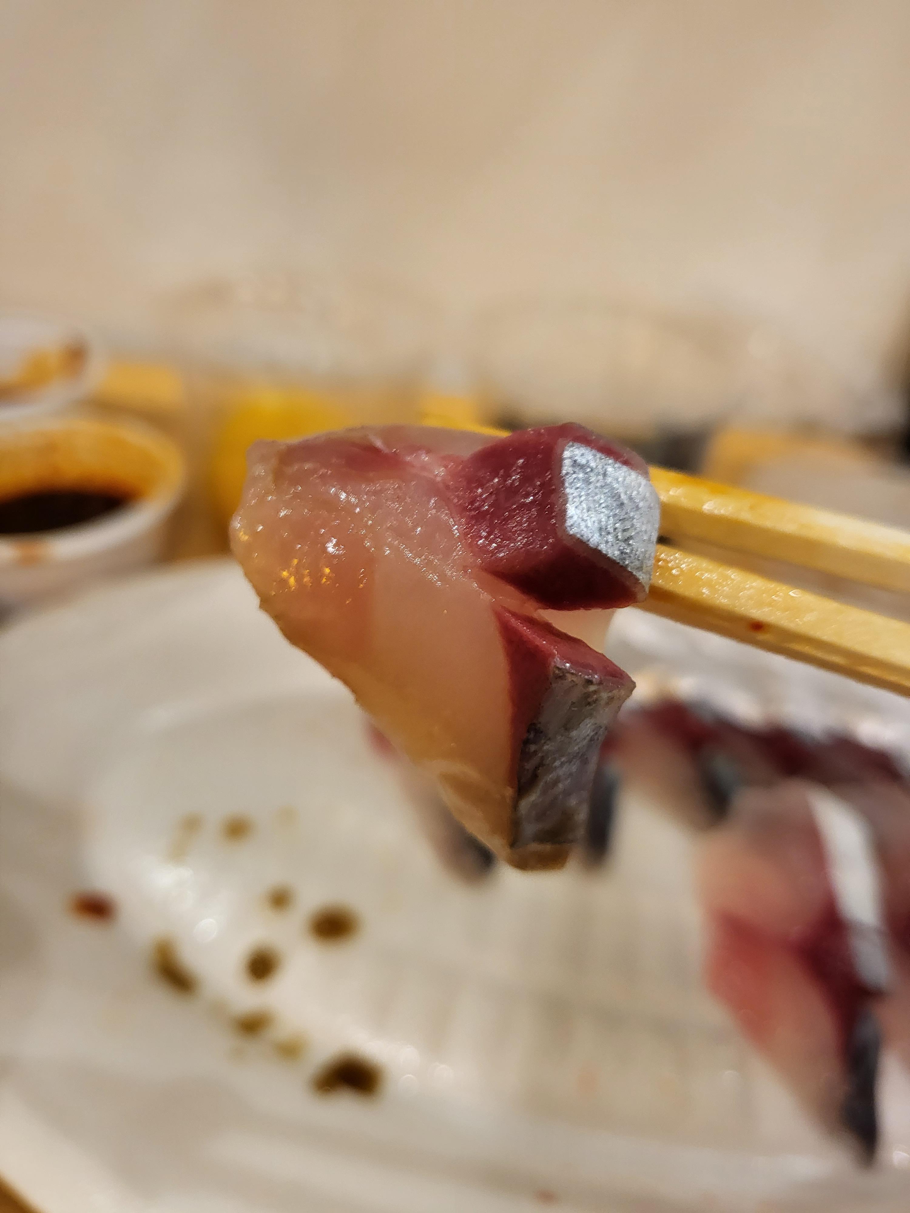 고등어 회 한점 집어 들고 입으로 꿀꺽~ 대방어와 비슷한 맛과 느낌이 든다.