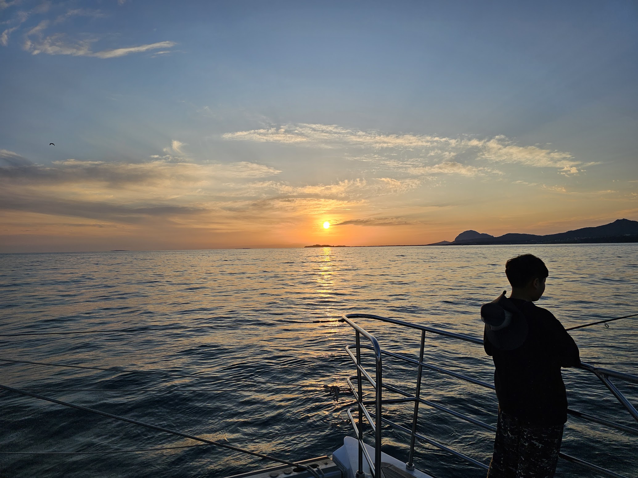 낚시 타임이 끝나고 석양 포토존에서 열심히 카메라 셔터를 눌렀다. 바다 한가운데에서 보는 석양이 마치 한 폭의 그림 같다는 생각이 들었다.