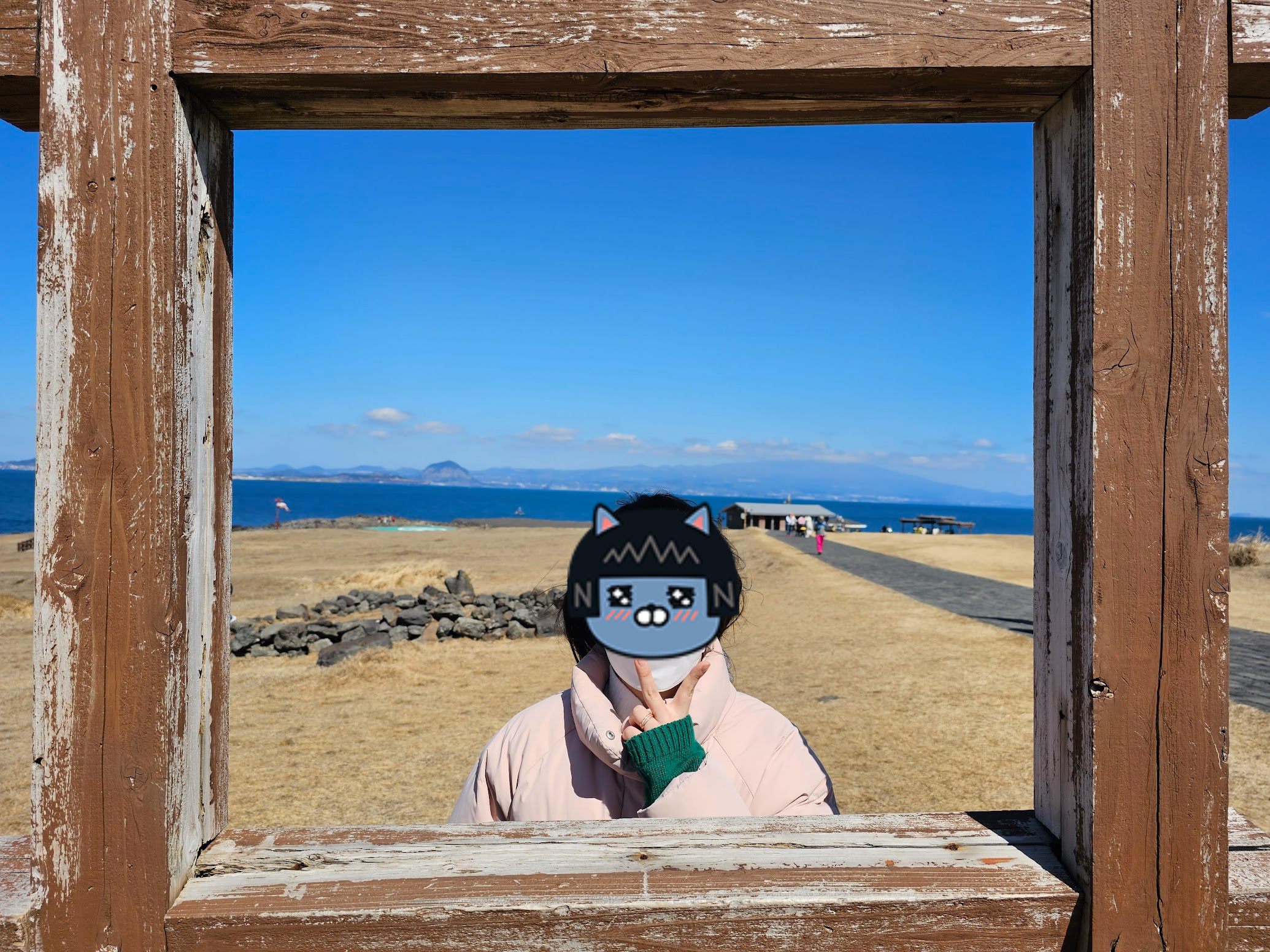 마치 타이타닉의 주인공이 된 것 마냥 신난 와이프. 패딩을 입지 않아서 카메라, 지갑, 차키 등의 물건들이 바다에 빠지지 않도록 꽉 잡으며 촬영했다.