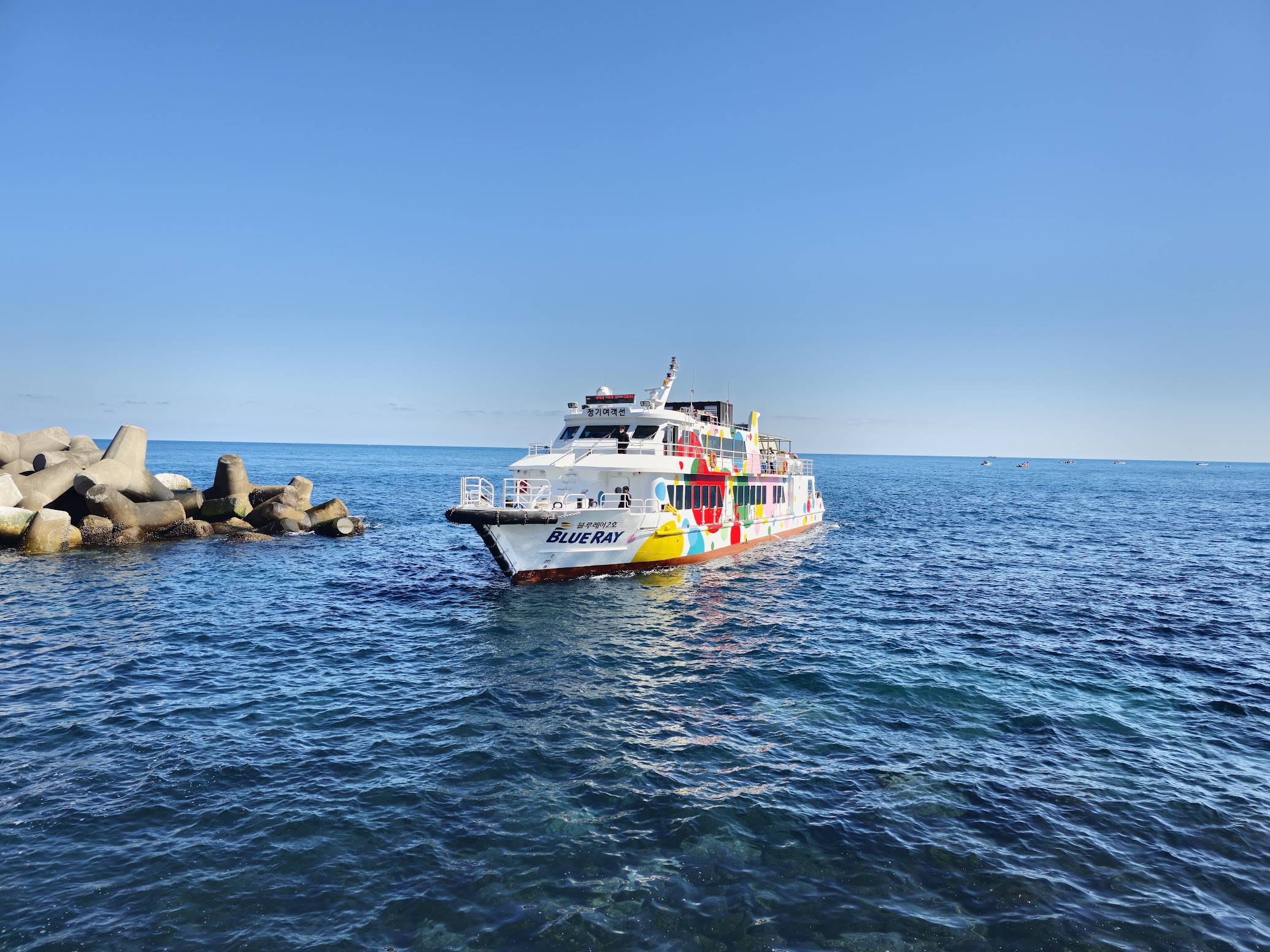 출발 전 제주도 항구의 아름다운 모습.