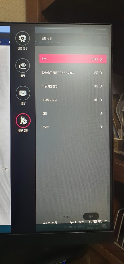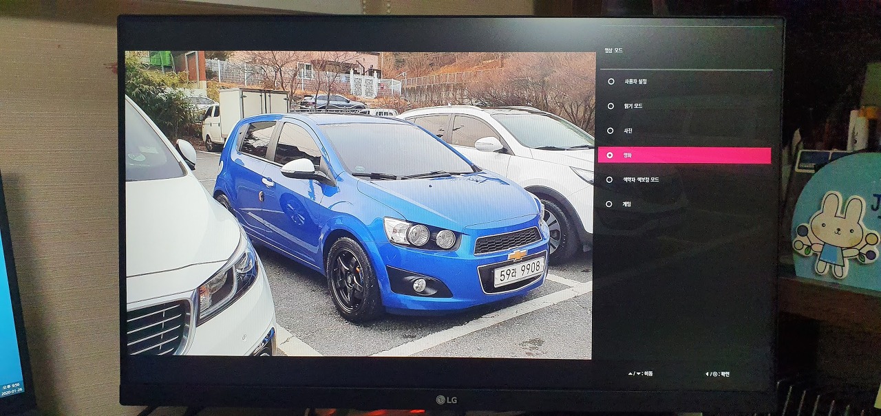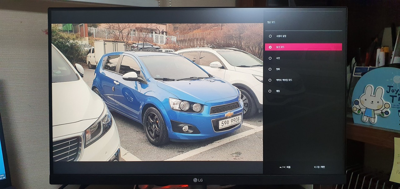 설정 중에서 가장 자주 사용할 것 같은 메뉴는 영상 모드. 모드에 따라 모니터의 색감이 확실하게 차이가 있다. 폰 카메라로 촬영해서 차이가 보일지 모르지만 그래도 확인해보자.