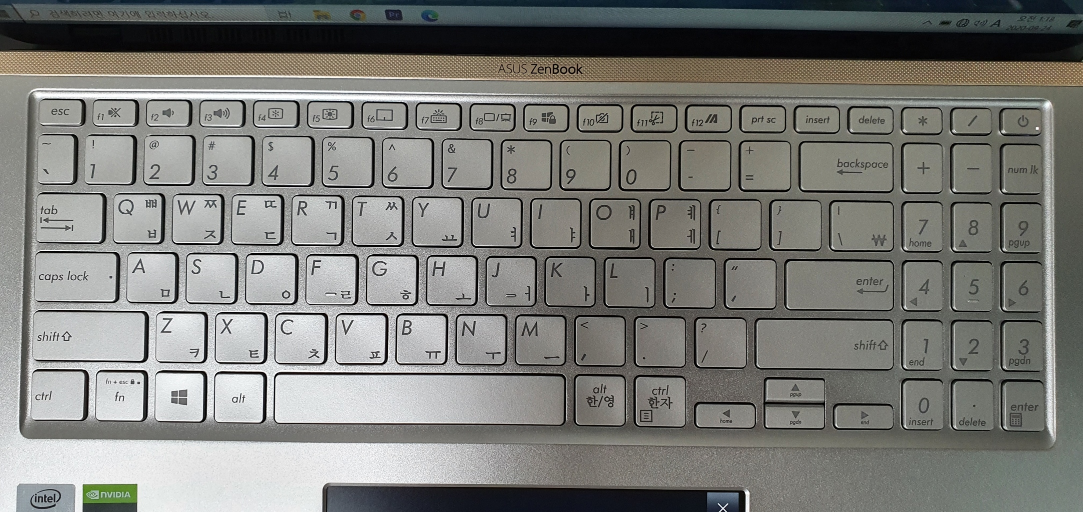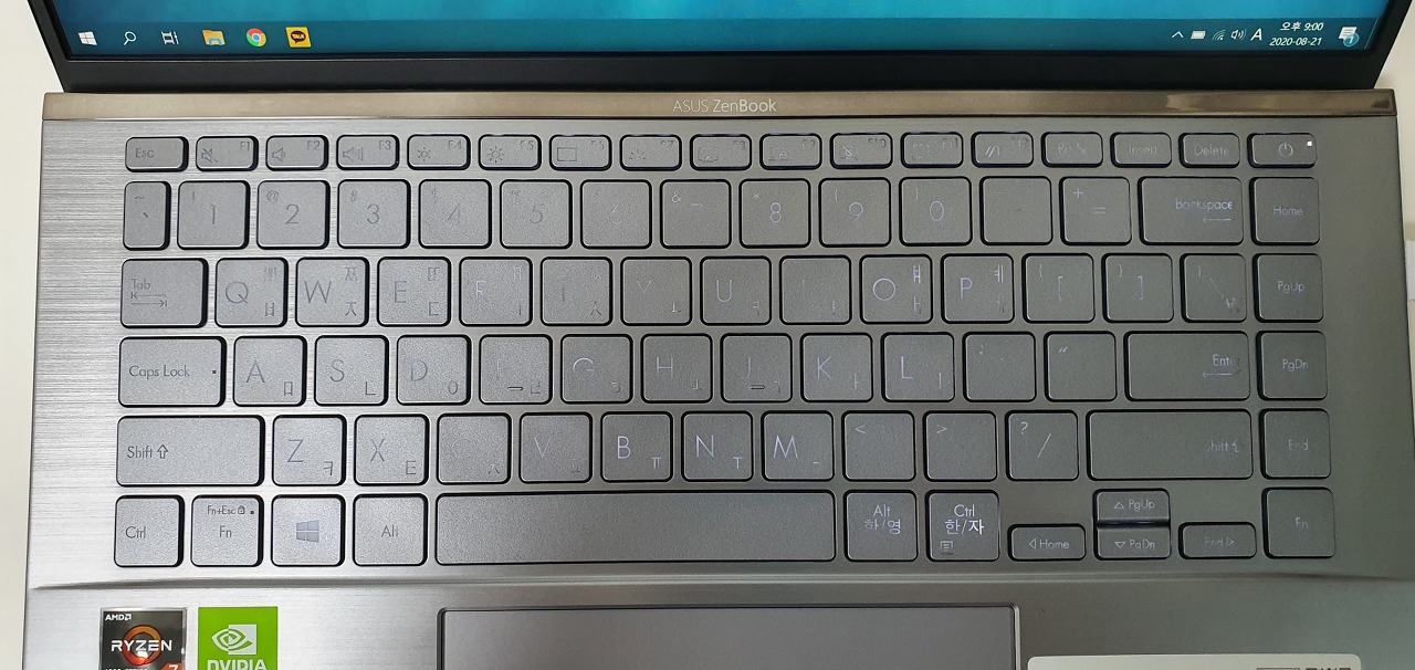 키보드는 UM433IQ와 비슷한 색상인데도 어떤 키인지 구분이 잘 가는 편이다. 그런데 키에 새겨진 한글 폰트가 올드해 보인다. 왼쪽이 UX534 오른쪽이 UM433IQ 키보드다.
