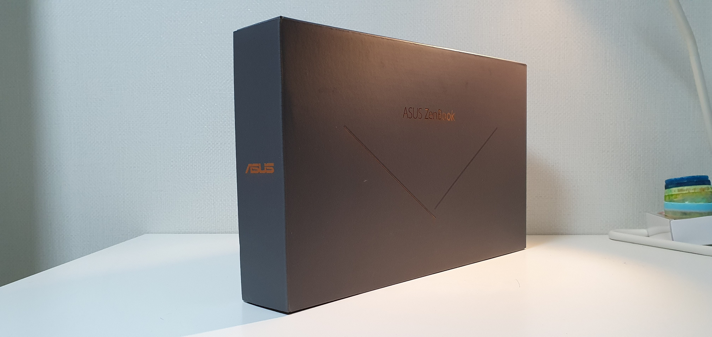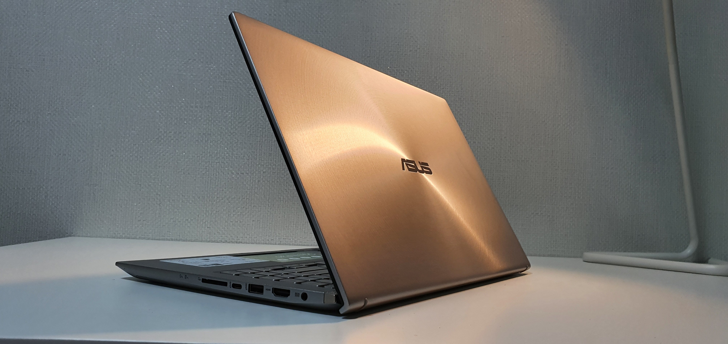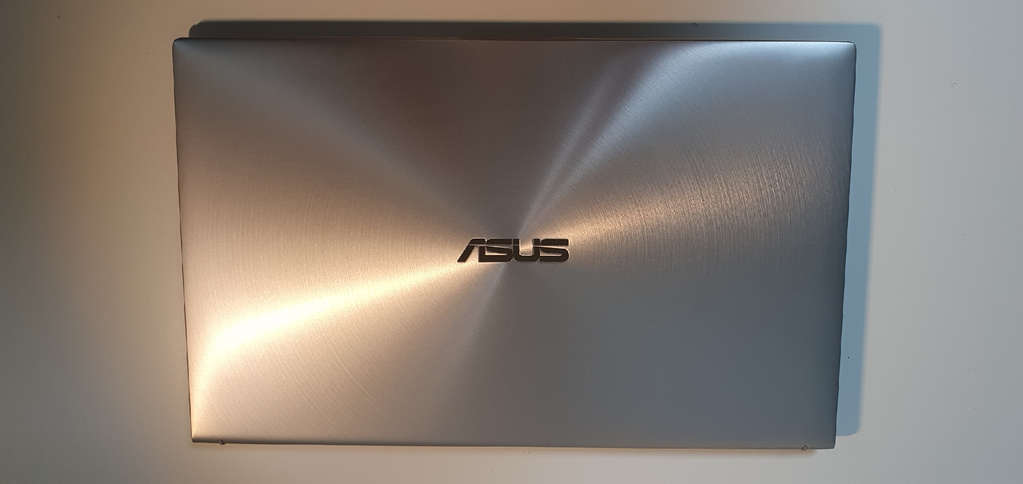 상판에는 ASUS 로고를 중심으로 헤어라인이 물결처럼 퍼져나가는 형상을 띤다. 이것이 바로 젠북의 상징.
