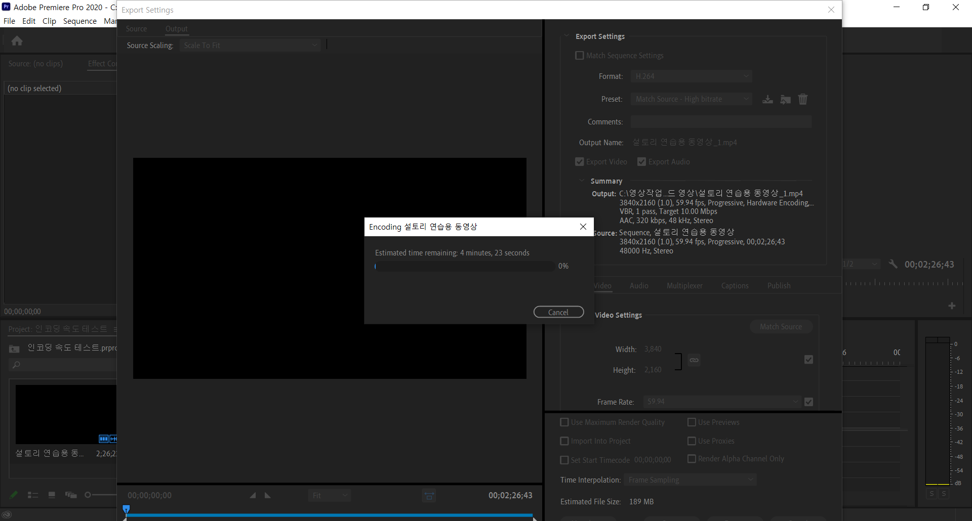 UX534FTC-A9085T에 탑재된 GTX1650 MAX-Q의 인코딩 성능은 얼마나 좋을지 테스트해보기 위해 2분 30초짜리 4K 영상을 인코딩해봤다.