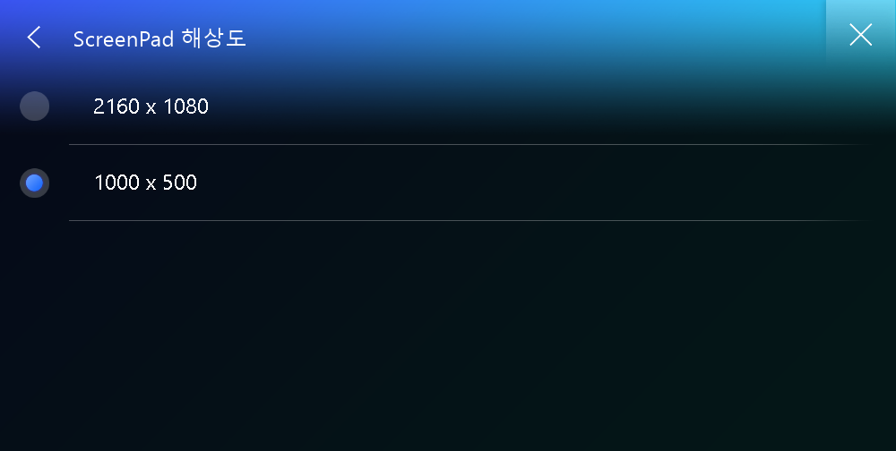 스크린 패드의 해상도를 설정할 수 있는 화면. 메인 디스플레이보다 더 높은 해상도를 지원하는 것이 인상적이다. 문제는 어느 해상도로 설정하든 간에 글자가 너무 작아서 눈이 빠질 것 같다. 눈이 너무 피로하다. 2160 x 1080은 절대 비추한다.