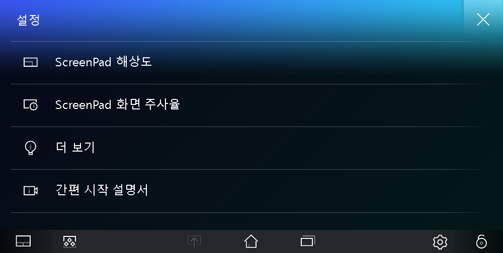 아래의 사진은 스크린 패드 전용 설정 화면들로 중요한 항목들만 살펴보자. 아래는 스크린 패드의 밝기를 조절하는 화면으로 밤에 노트북을 사용할 때 눈이 아플 만큼 밝기를 올릴 수 있다.