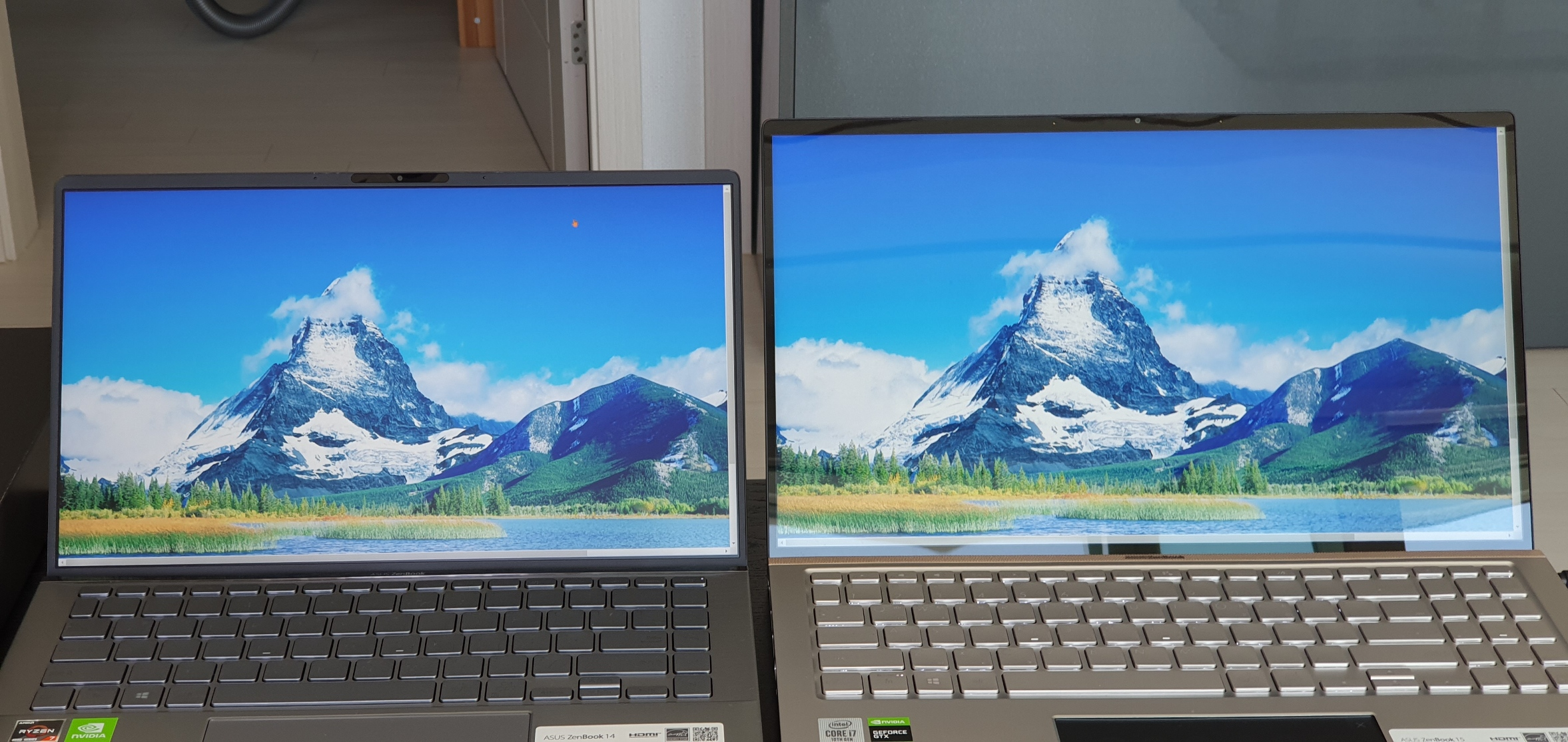 그다음 아래는 UX534FTC의 글레어 디스플레이 사진. 한눈에 봐도 UX534FTC가 선명하다는 것을 알 수 있다.