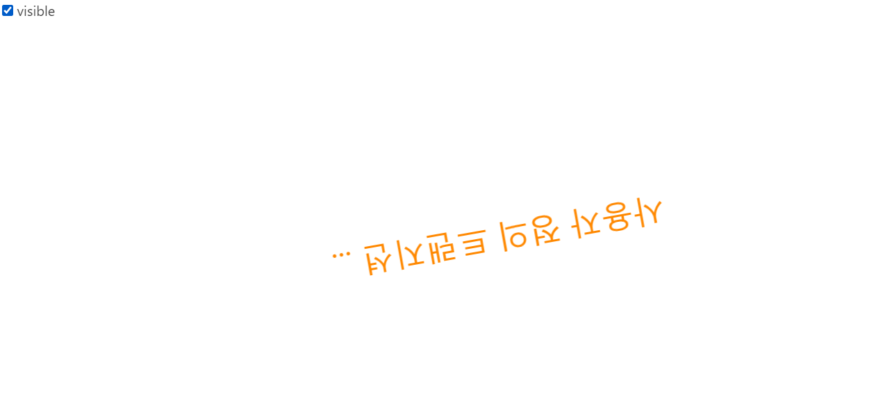 아래의 코드는 Visible 체크 박스를 체크 시 트랜지션이 적용된 <div> 요소가 사용자 정의 트랜지션 효과를 내며 화면에 출력하는 예제 코드이다. easing 함수 중 elasticOut을 사용하여 사용자 정의 트랜지션 효과인 Spin을 적용하였다.