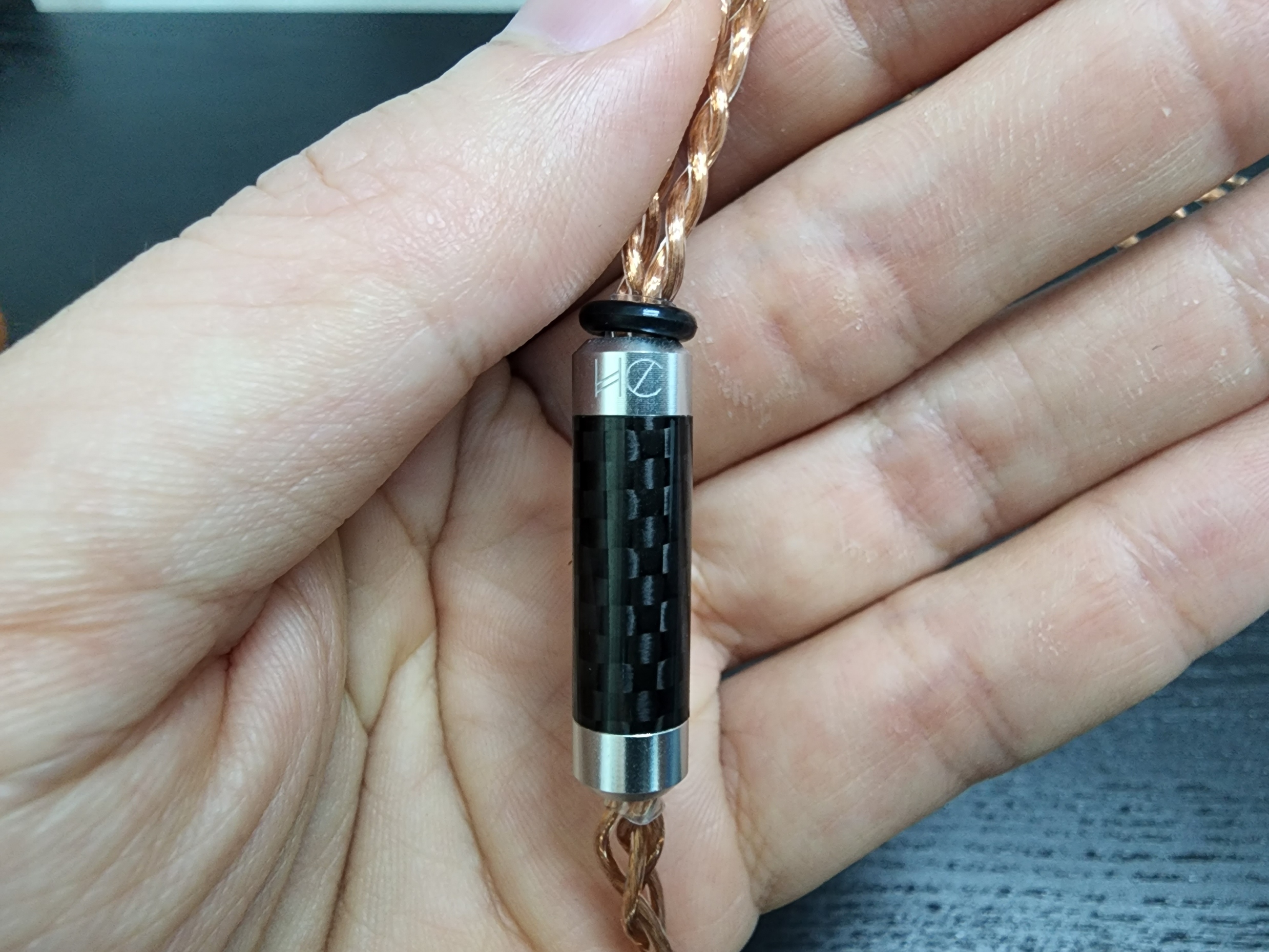 스타크에 연결한 사진. 스타크는 극성이 다른 이어폰들과 달리 반대로 있기 때문에 플러그의 홈이 안쪽으로 가도록 연결해야 한다. 케이블이 정말 고급스럽고 색상도 아름답다.