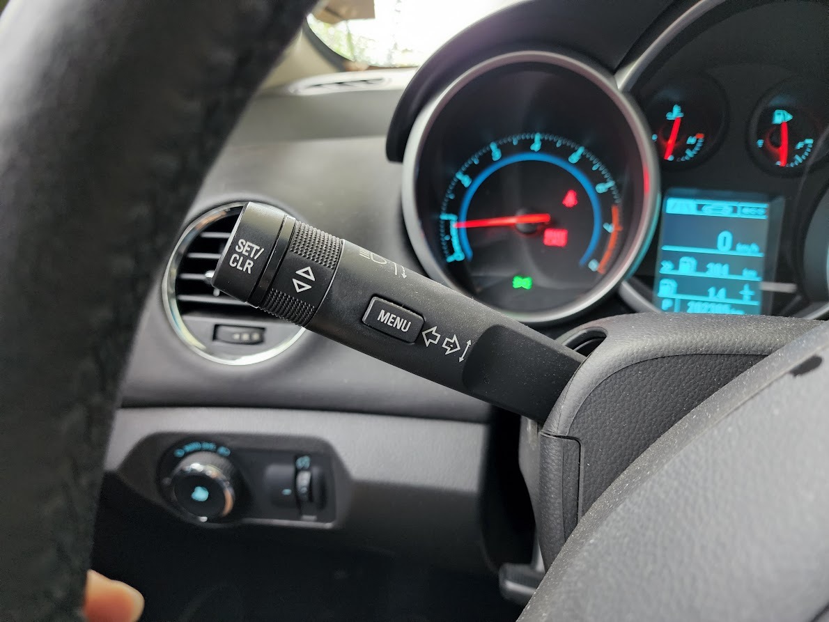 당시에는 고급 옵션이었던 크루즈 컨트롤. 준중형 최초로 크루즈 컨트롤을 탑재한 차가 바로 크루즈다. 크루즈 버튼은 다른 쉐보레 차와 달리 상단부를 누르면 버튼이 리턴되지 않고 고정되는 특이한 타입이다. 버튼 조작감이 매우 좋아서 운전하면서 심심할 때 가지고 노는 재미가 있다.