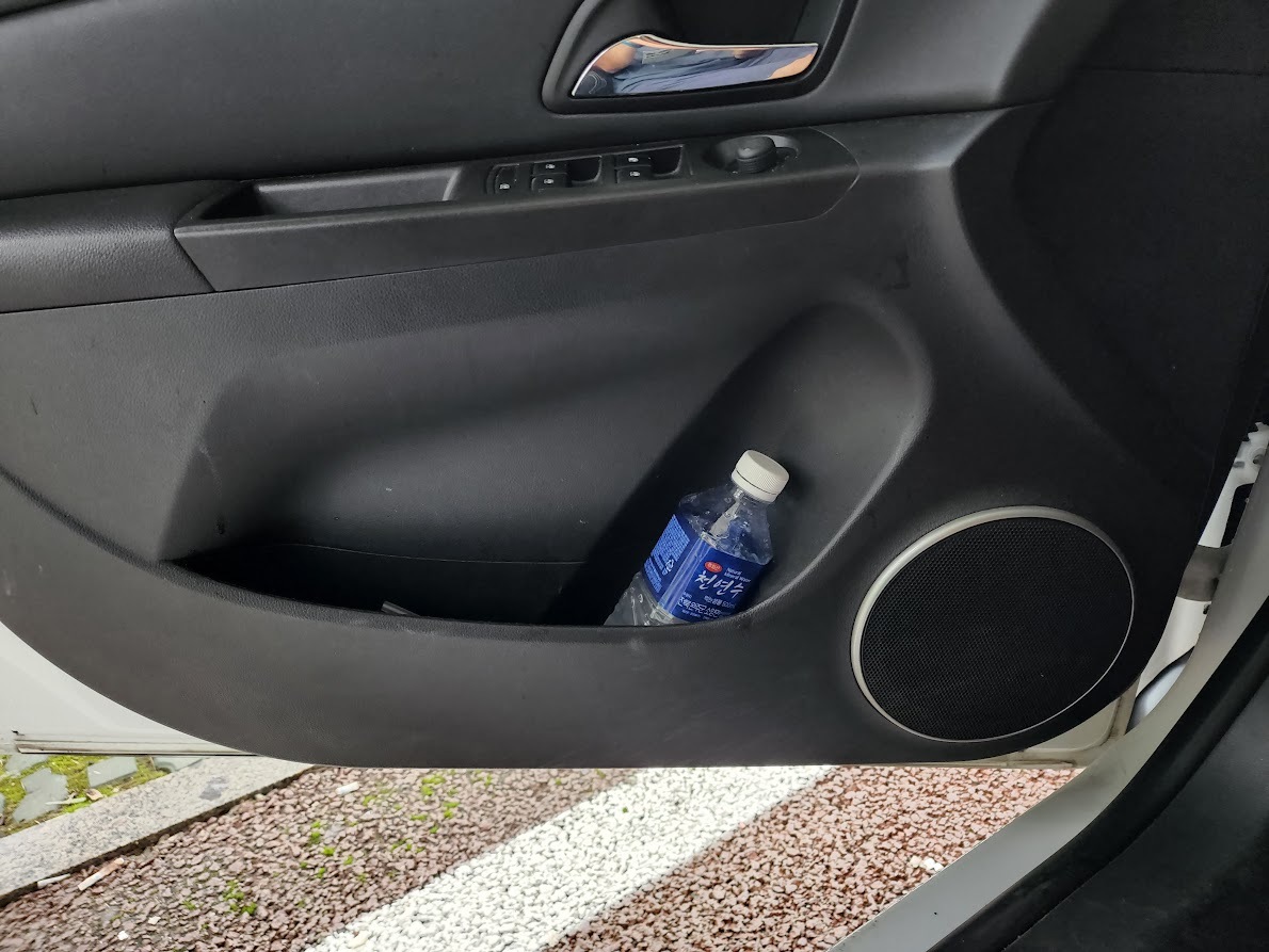 형식적으로 제공되었던 K5 DL3의 1열 도어 포켓과는 달리 1.5L 페트병도 넣을 수 있고 뒤쪽에도 어느 정도 물건을 수납할 수 있는 공간이 제공된다.