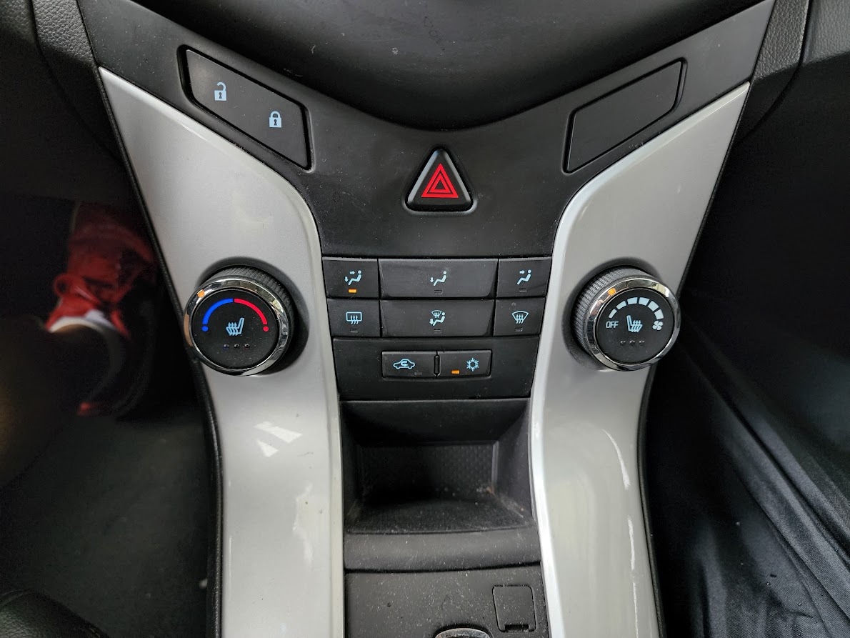 닳고 닳은 헤드램프 조작 버튼. 가운데 버튼은 전면 안개등 버튼이다. 그래도 크루즈에는 내부 조명 밝기 스위치는 넣어 줬네... (아베오는 끝까지 넣어주지 않았다...)