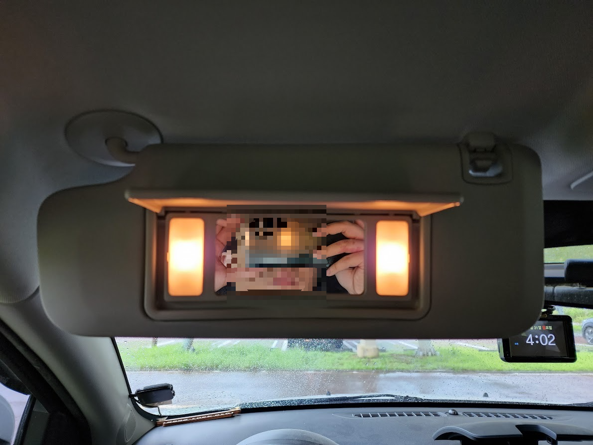 1열 선바이저 사진. 풀옵션으로 올라가도 운전석에만 조명이 적용되는 부분은 아쉽다.