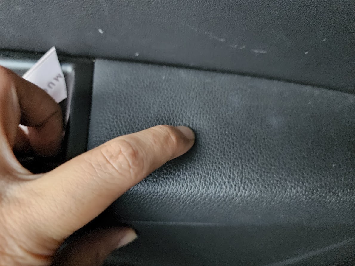 2열의 도어 트림 사진. 1열처럼 인조 가죽 마감이 매우 고급스럽게 잘 되어있다. 플라스틱 조립 품질도 뛰어나고 무언가 깔끔한 인상을 보여준다. 도어 포켓은 작은 편으로 500ml의 생수병과 스마트폰 정도는 충분히 수납할 수 있다.