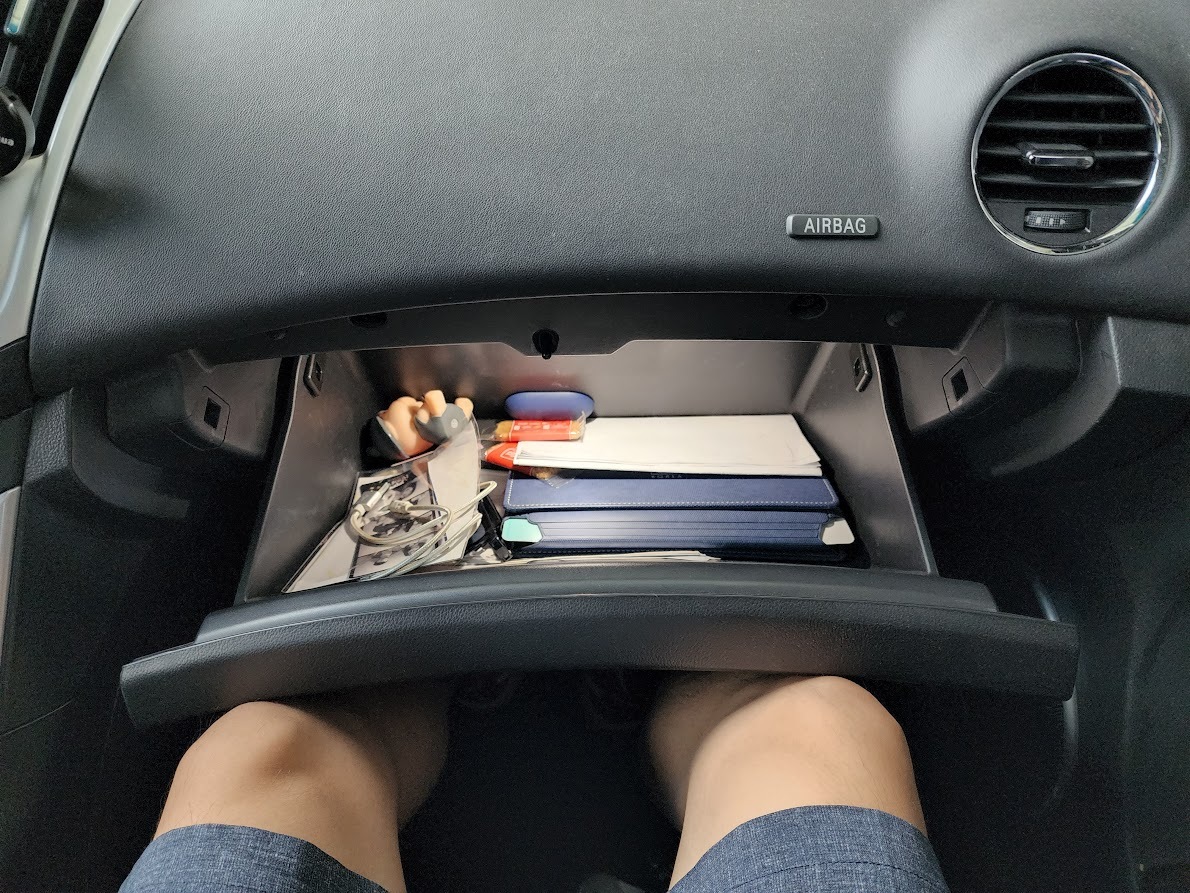 글로브 박스의 용량은 현재 타는 더 뉴 말리부보다 훨씬 크다. 조명은 순정에는 없는 기능인데 아마 첫 차주가 달아 놓은 것이 아닌가 생각된다.