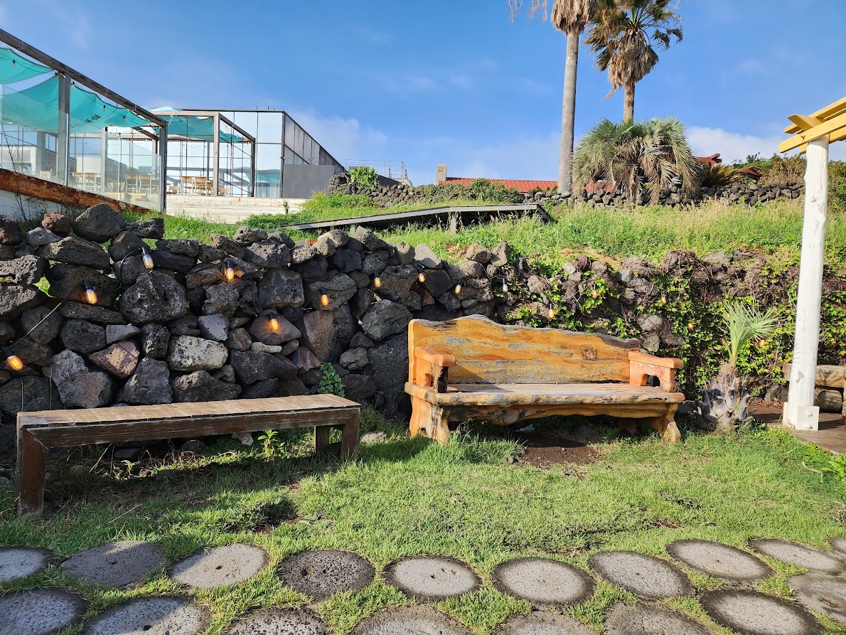 점심 식사를 매우 만족스럽게 하고 애월 해안 도로를 달려 애월 카페의 거리에 도착했다. 원래는 몽상드 애월이라고 빅뱅의 지드래곤이 만들었다고 알려져 있는 카페에 가려고 했는데, 입구를 못 찾아서 그냥 해안가 앞에 있는 봄날 카페로 들어갔다.