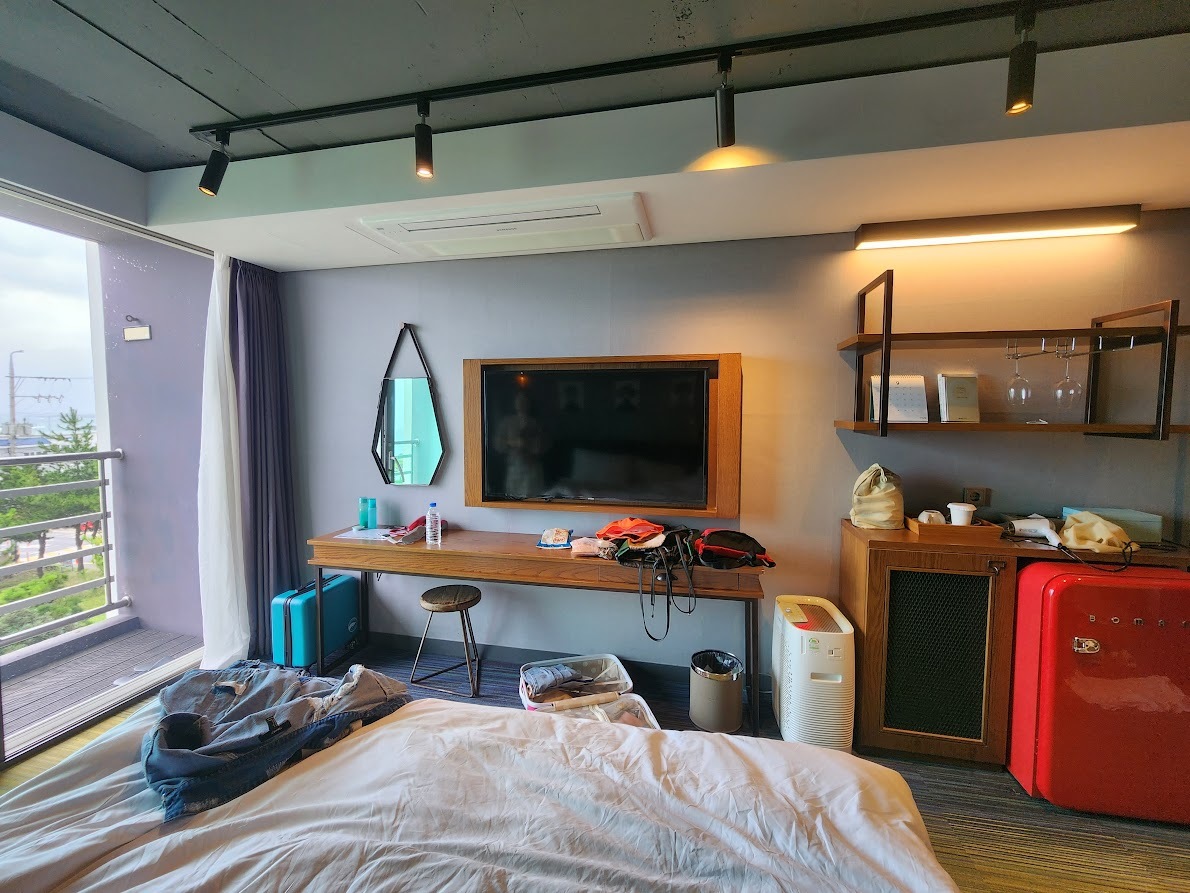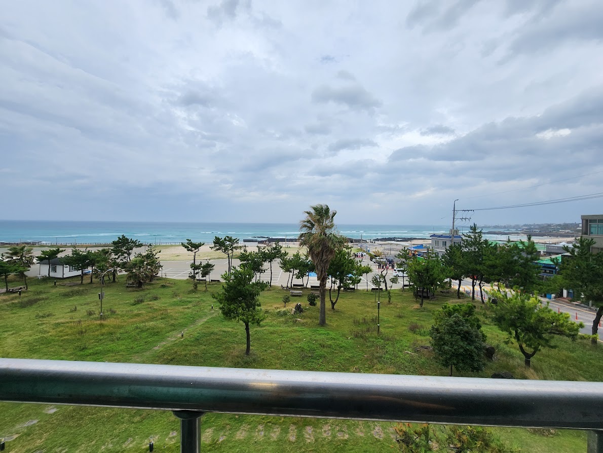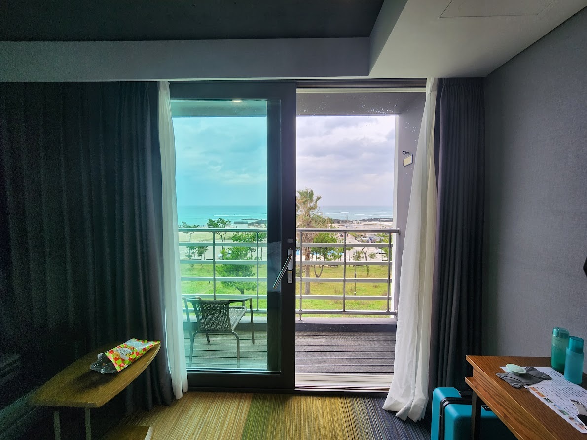 우리가 예약한 방은 오션뷰라서 바로 앞에 곽지 해수욕장을 방에서 볼 수 있었다.