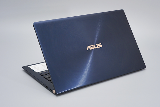 상판과 하판을 연결하는 중간 부분에는 크롬 장식과 ASUS ZenBook이라는 문구가 새겨져 있어 고급스러운 디자인을 뽐낸다.