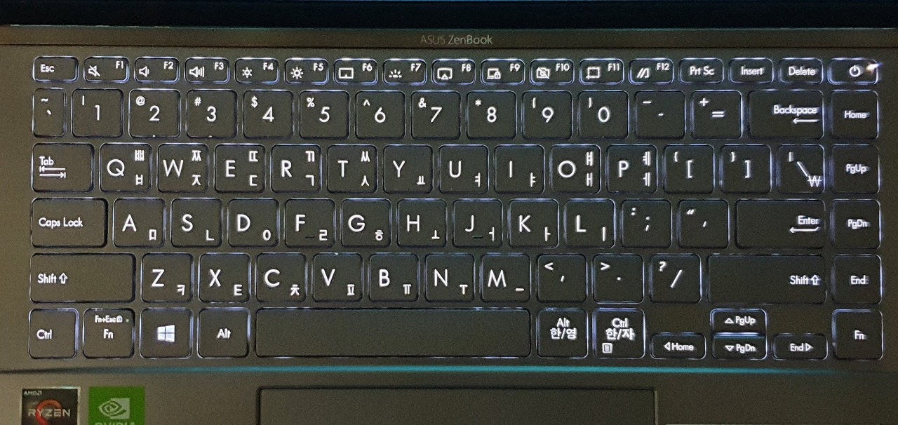 다만, 키의 재질은 보급형 노트북들과 달리 촉감도 매우 좋고 코팅도 잘되어있다. 눌리는 느낌은 부드럽고 쫀득하여 만족도가 높다.